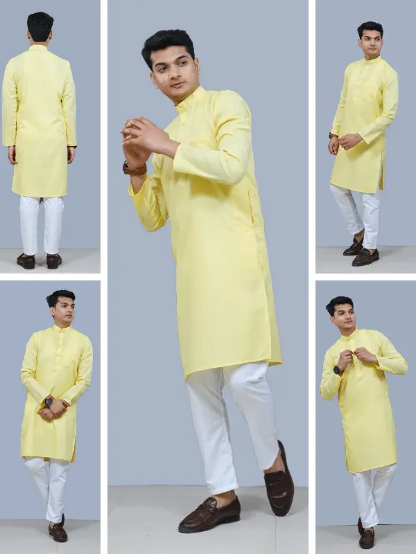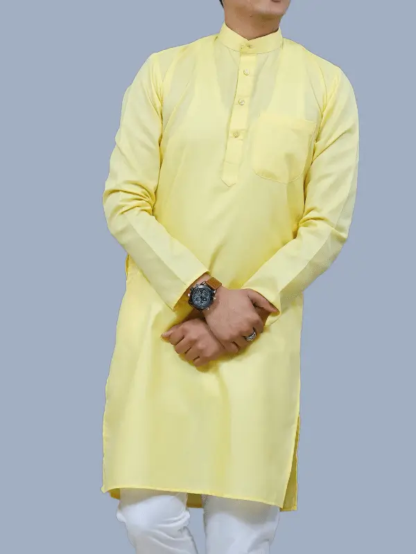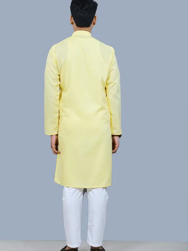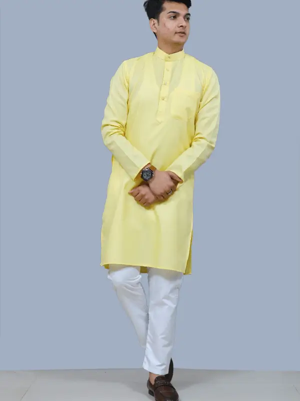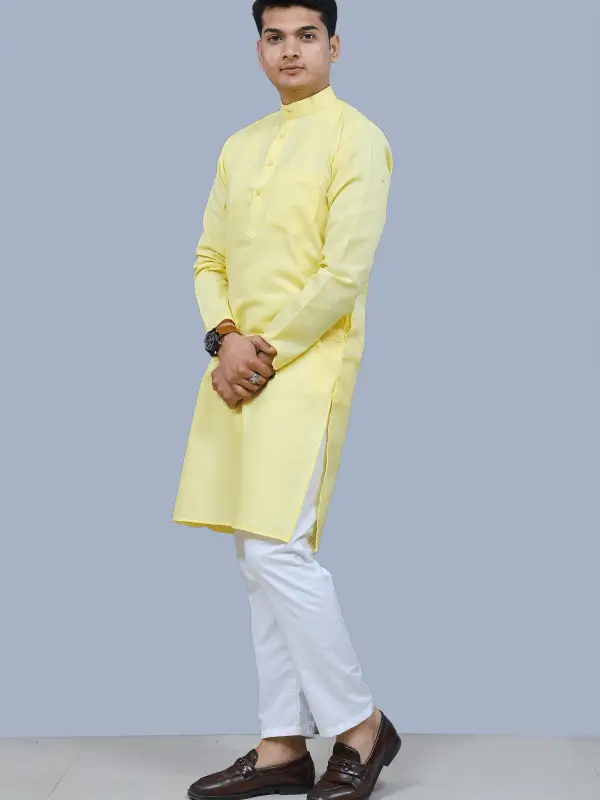 This elegant kurta pajama set is made from high-quality yellow cotton, perfect for any special occasion or casual wear. The kurta features intricate detailing and a comfortable fit, while the pajama offers a relaxed and stylish look. Ideal for men looking for a traditional yet modern outfit, this set is a must-have in any wardrobe.
